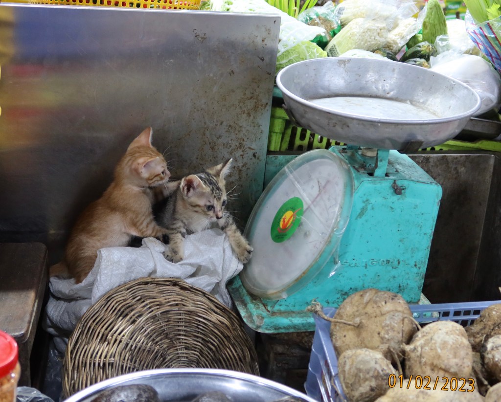 At the other end of the cultural spectrum, there are, of course the night markets full of food and locally made handicrafts. I’m not sure if this Christmas hat is a leftover from last Christmas or is hoping for an early sale for this year’s event!
