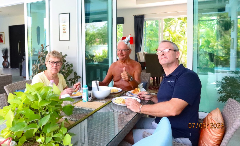 Birthdays in Thailand are rarely celebrated with the same razzmatazz as at home which suits me down to the ground – especially when you get to a certain age! Nevertheless, I was delighted to have my sister, Di, (who had travelled from France) and my nephew (who lives in Malaysia) come and stay with us for an all too short few days one of which was a certain anniversary!