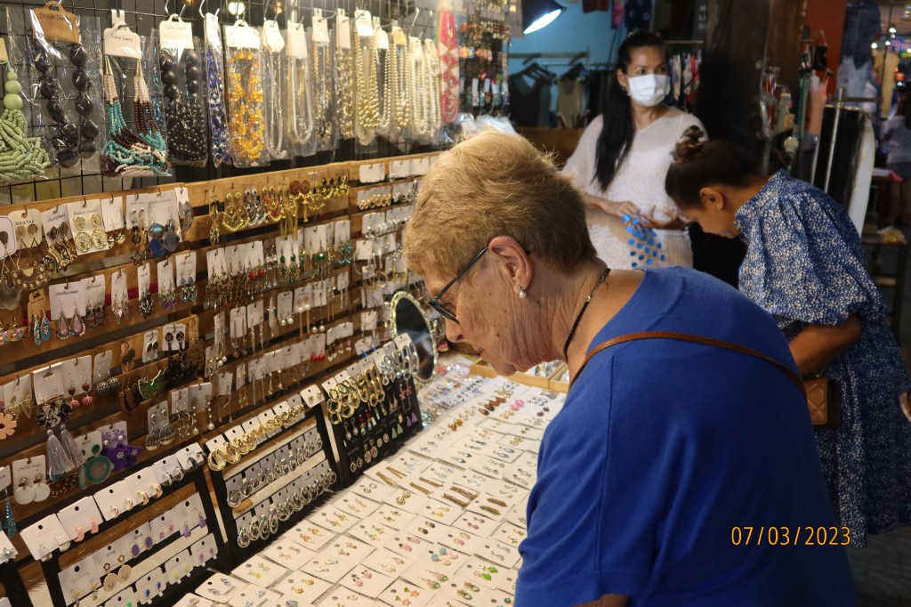 Small jewellery items are an ideal buy for the departing traveller. Sadly, I could not persuade my sister to buy this ethnic headgear from the north of Thailand as it would have certainly raised a few eyebrows back in rural France!